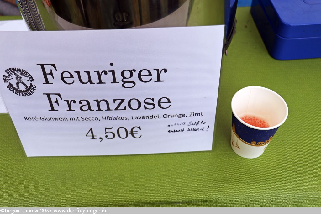 einen Glühwein nach römischen Rezept zum probieren und die neueste Creation 'Frecher Franzose' mit Secco, Hibiskus, Lavendel... echt lecker.